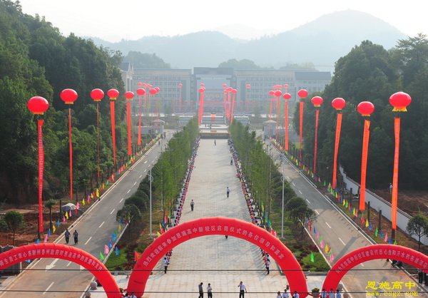 創辦初期的校址在恩施城梓桐巷道臺衙門,隨著時代的變遷,歲月的更替,學校七易校址,現校址位于自治州首府恩施市龍鳳綜合扶貧開發區的方家埡口。校園占地710畝,建筑面積10萬平方米,依山就勢,靠山面水,清靜幽雅,景色宜人,充分體現人性化、平民化、標準化、民族化、生態化的特點,巧妙地對自然山體、水域進行合理利用和重新塑造,充分體現土家族、苗族的建筑特色和風格,積極保護學校周邊現有的山林綠地,既滿足教學要求,又具有觀賞性,形成“一軸一心多區”的總體布局形態,營造山環水繞、和諧共生的校園空間。“一軸”:即校園空間主軸線,是整個校區的主脈和樞紐,通過主軸統領校園各功能區域,構成完整統一的校園空間系統;“一心”:即校園的教學核心區,是整個校園的精髓,處于整個校區的中心和主軸線的中間地段,以升旗廣場為中心,布局科教樓、教學樓、行政樓等設施,形成校園的教學核心區域;“多區”:即學生生活區、體育運動區、教工生活區、后勤管理區、生態景觀區。校園氣勢恢弘、和諧大氣,布局科學、搭配合理,造型新穎、色調高雅,各區既相對獨立,有機銜接,一線貫通。校園內銀杏、香樟、金桂,亭亭玉立;青山、樓房、碧水,層層相依。走進校園,恍若走進了一個美麗的世外桃源,給人一種“讀在青山綠水間”的愜意和享受。
